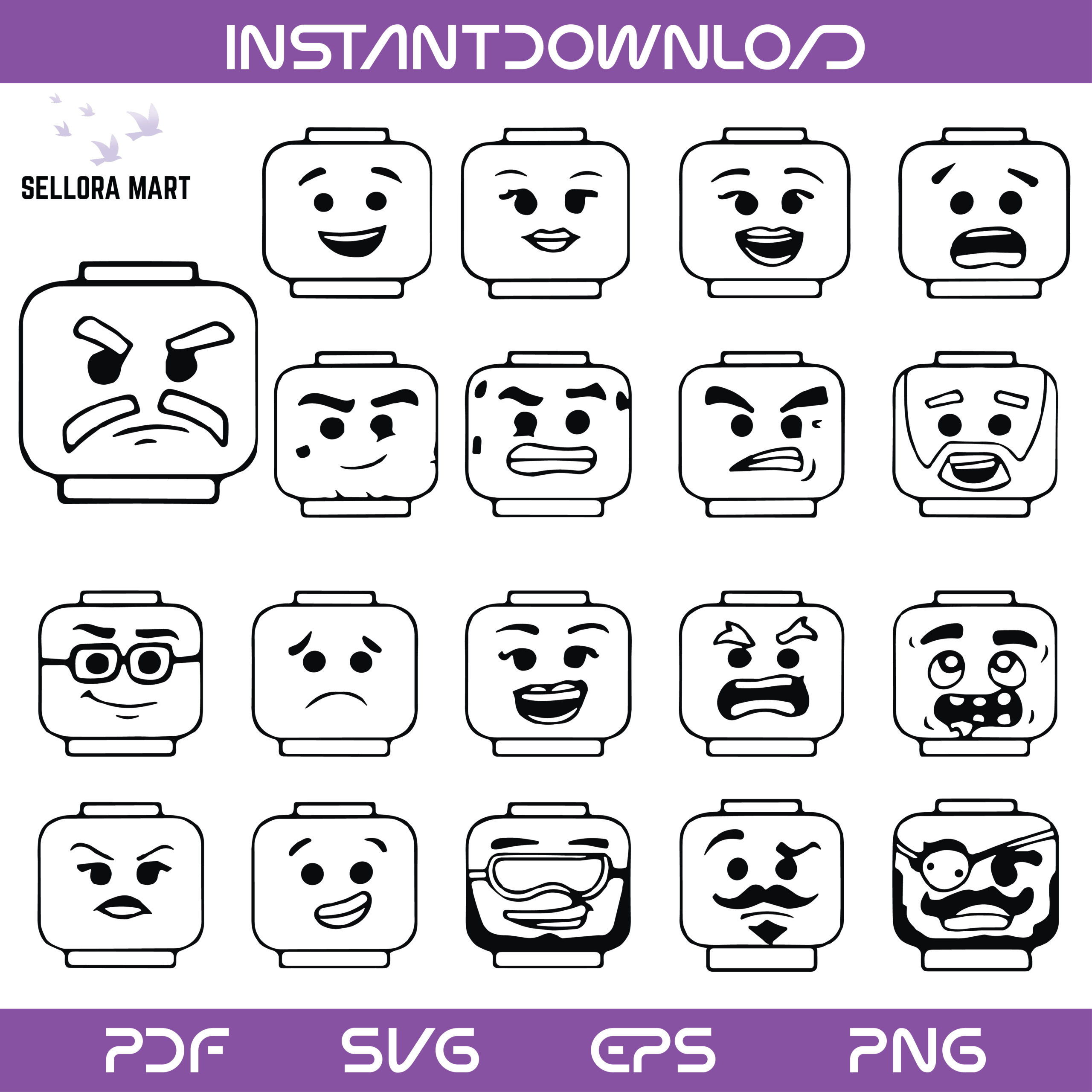 Add fun, personality, and playful expressions to your creative projects with this LEGO Head Faces SVG Bundle 🧱✨