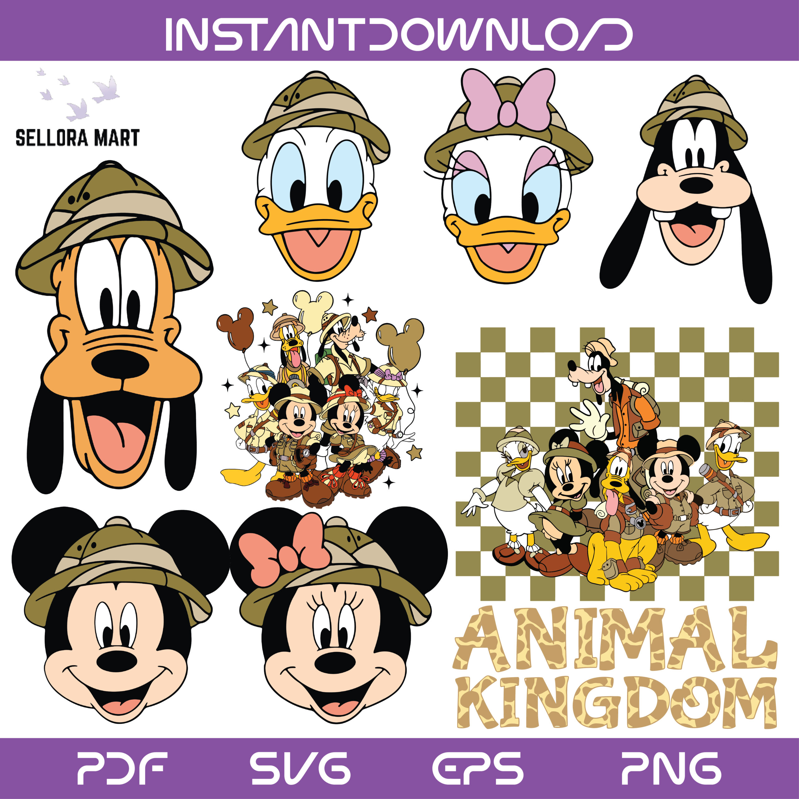 This vibrant collection features Disney-inspired safari characters including Mickey, Minnie, Donald, Daisy & Goofy in a fun Animal Kingdom explorer theme, making it perfect for theme park lovers and creative projects.